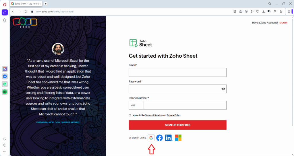 1. इसके बाड़ ACCESS ZOHO SHEET पर click करे , जहाँ ऐरो का निशान है